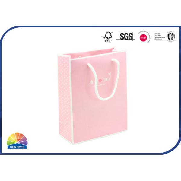 Gloss Lamination Paper Gift Bag with Nylon Ropes, Light Pink Color Custom Dimension